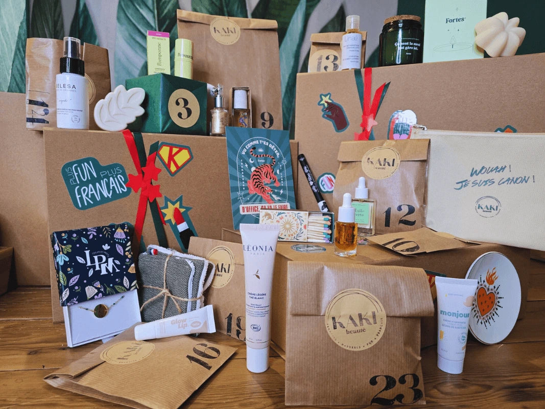 Calendrier KAKI beauté, unique, pensé pour célébrer la force et la beauté des femmes. Chaque case renferme une dose d’énergie, de bienveillance et de KAKI POWER pour illuminer décembre !