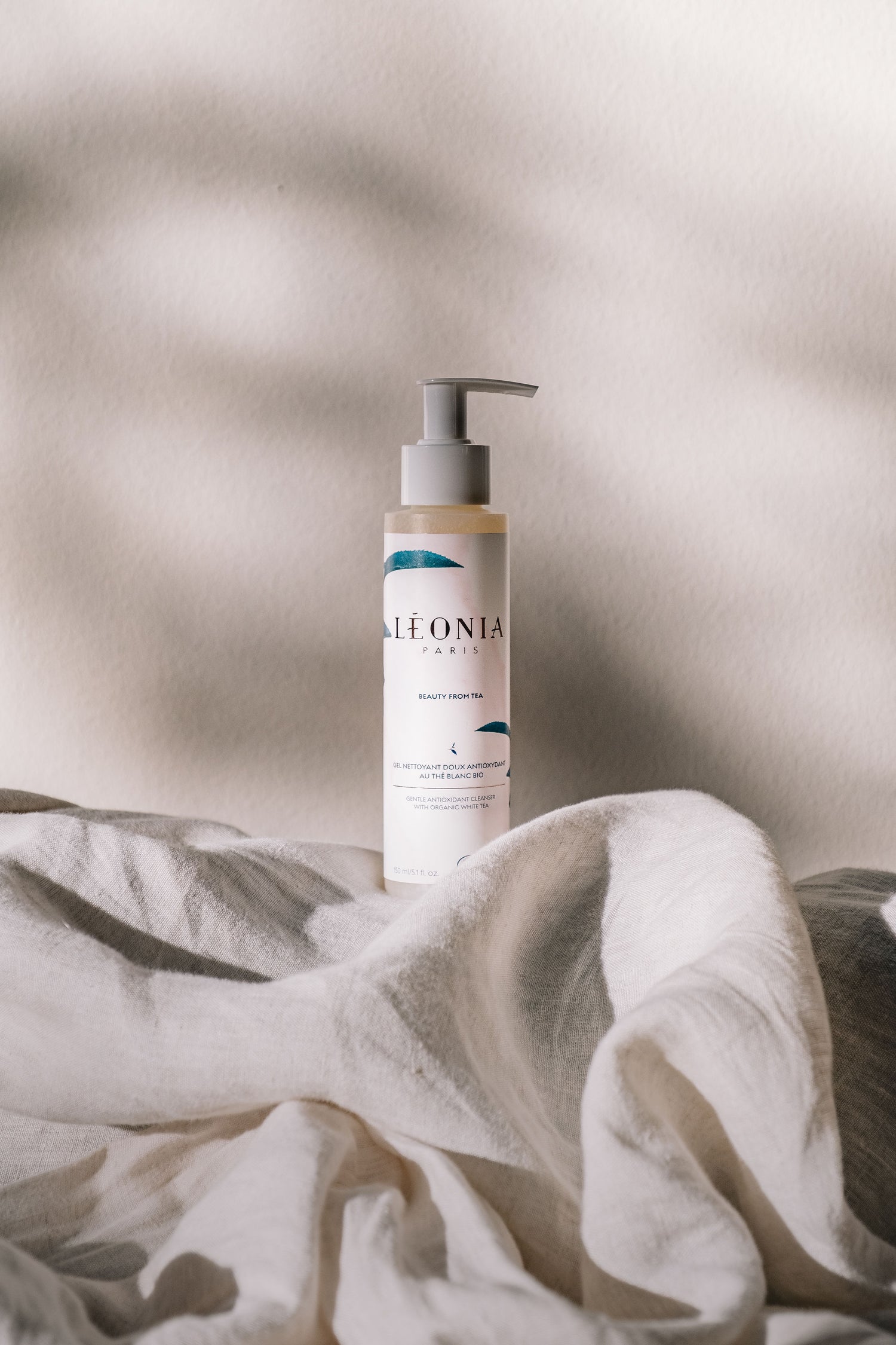 After removing your makeup, opt for LÉONIA facial cleansing gel . It will remove the last traces of makeup. Enriched with white tea (and therefore antioxidant), it gently cleanses your skin while detoxifying it.