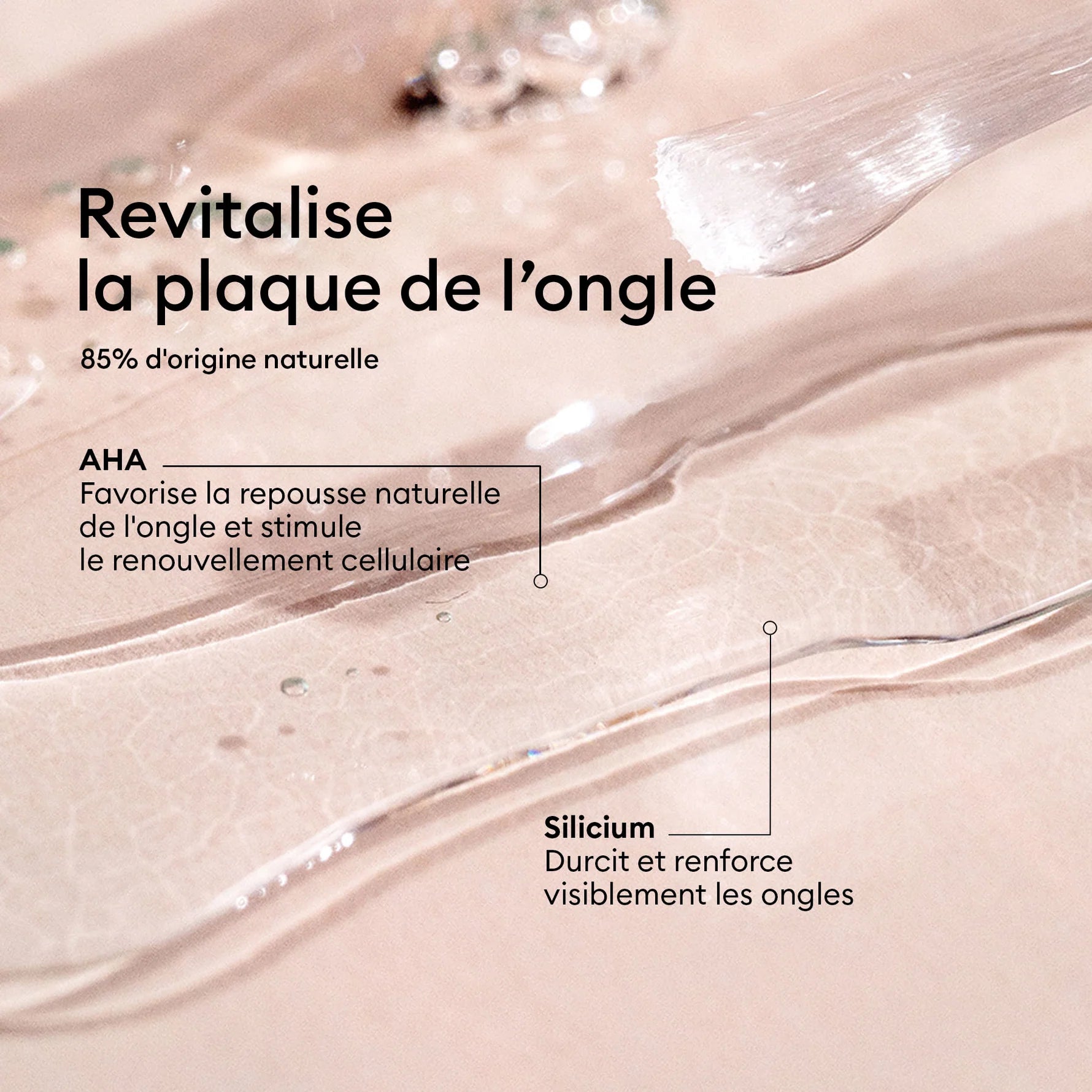 Dès la première semaine, vos ongles retrouvent vitalité, densité et résistance. Bio-sourcée à 85%, sa formule stimule le renouvellement cellulaire pour favoriser une repousse saine et durable.