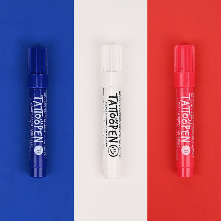 - 3 Feutres Tattoopen : 1 Bleu foncé, 1 Blanc et 1 Rouge.