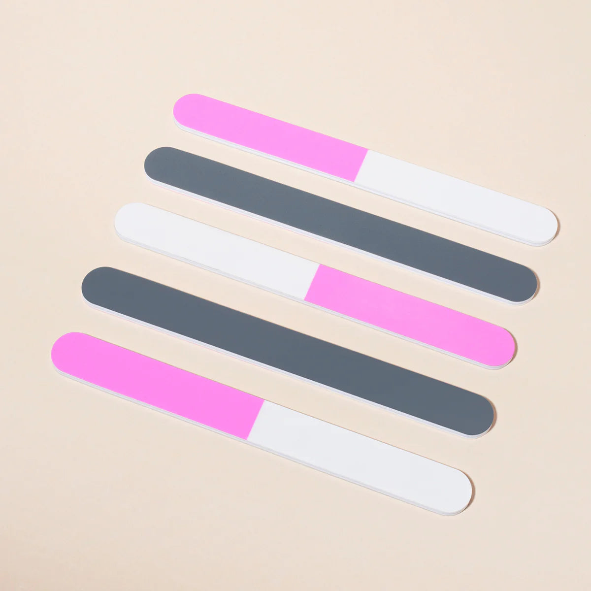 Utilisez la face rose pour éliminer les petites irrégularités et lisser délicatement la surface de l’ongle.