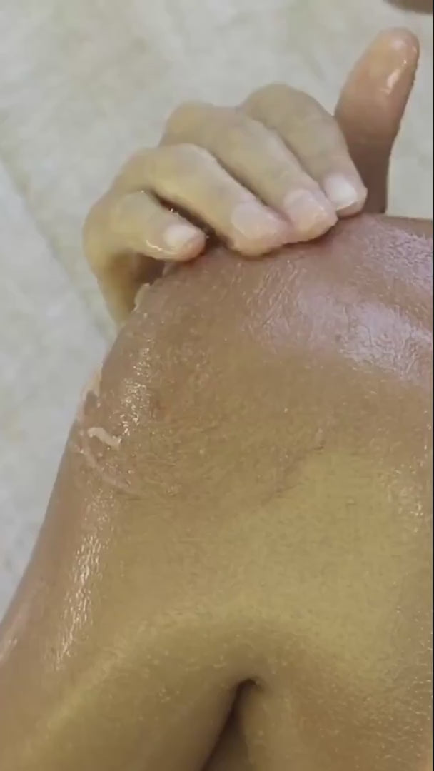 - Exfoliez en douceur : massez par mouvements circulaires sur l’ensemble du corps afin d’activer la microcirculation et d’éliminer les cellules mortes.