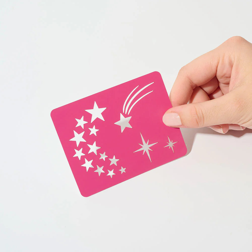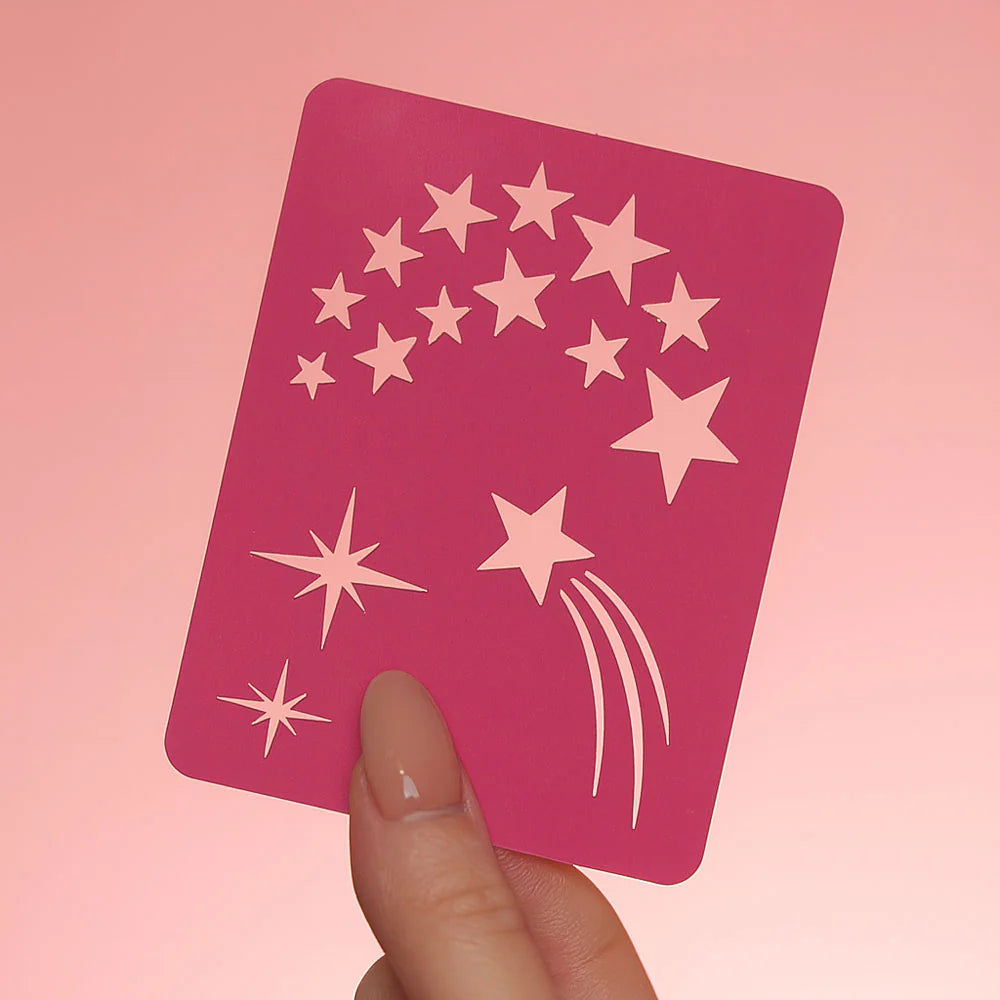 Envie d'avoir des étoiles plein les yeux et sur la peau ? Transformez votre mise en beauté en une véritable œuvre d'art avec notre pochoir Étoiles réutilisable. Idéal pour les festivals, les soirées ou simplement pour ajouter une touche de féerie à votre quotidien, cet accessoire vous permet de créer une constellation de paillettes d'une précision professionnelle en quelques secondes. Conçu pour respecter les peaux les plus délicates, il est l'allié indispensable d'un maquillage scintillant et réussi.